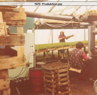Die Nachfrage an Gemüse stieg stetig an, weshalb der Bau eines Gewächshauses beschlossen wurde, nach dessen Fertigstellung 1963 konnten Gemüsejungpflanzen in für damals großen Verhältnissen produziert werden. |