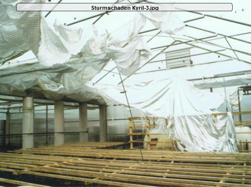 Die Tieffront Kyril zerstört mehrere 1000m² Gewächshausfläche und die steigenden Rohstoffkosten insbesondere der stark gestiegene Öl-Preis veranlassen das das 1996 sanierte landwirtschaftliche Nutzgebäude zu einem Heiz Haus für Hackgut umgebaut wird. |